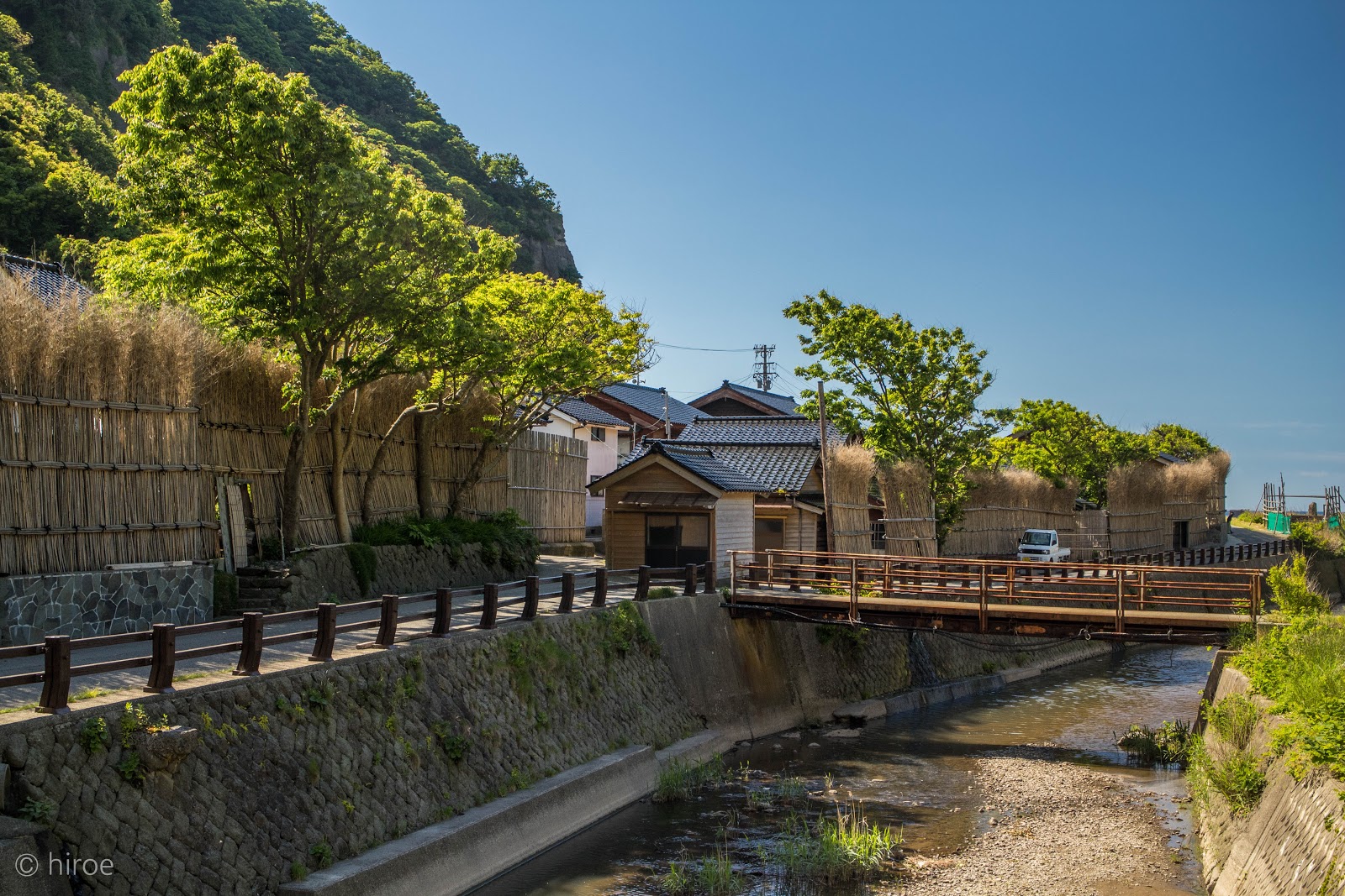 先ほどの海が見える田んぼはこの集落のすぐ上に、そして集落の先には入江があります。このあたりは海沿いの狭い平地に集落をつくり、人々は半農半漁の生活をして暮らしてきたそうです。特に上大沢は1960年まで徒歩でしかたどり着けない秘境で、そのせいか古い風習が今も生きており、この過疎の時代に明治から戸数が一貫して横ばいの奇跡の村と言われているのだとか。最初間垣に囲まれた村に「要塞」の印象を持ったのはあながち間違いではないのかも。