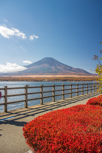 山中湖はドウダンツツジが真っ赤に染まって綺麗です。山中湖から富士山が綺麗に見られたのも初めてかも。